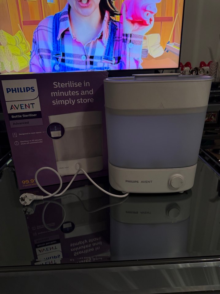 Philips Avent biberon sterilizatörü, hafif renkte olup, dakikalar içinde hızlı sterilizasyon ve kolay saklama sağlar. %99,9 mikrop öldürür. Bebeğim biberon ve emzik kullanmadığı için pek kullanmadım, 2 kere falan kullanmışımdır en fazla, 2500TL