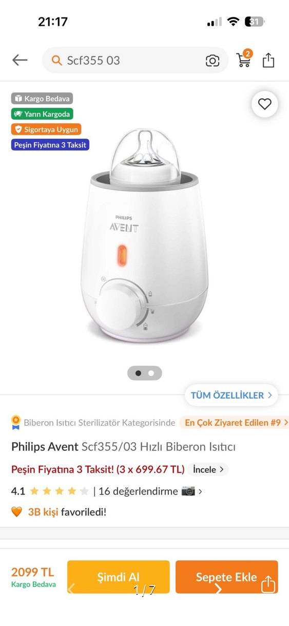 Philips Avent Hızlı Biberon Isıtıcı SCF355/03