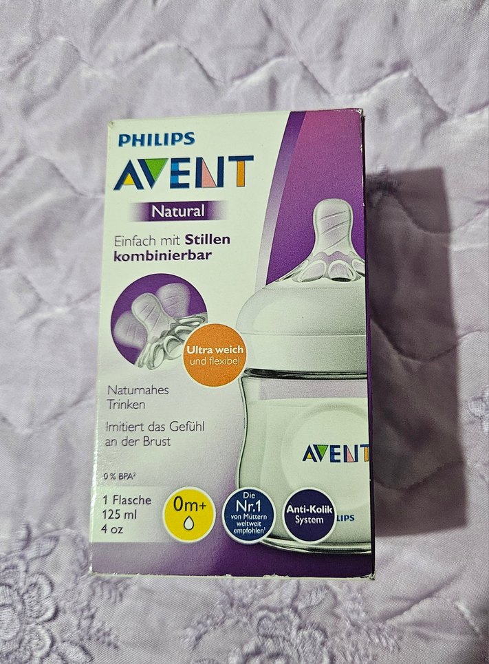 Philips Avent Natural bebek biberonu, emzirmeyi taklit eden yumuşak ve esnek emziğe sahiptir. 125ml kapasitelidir, 0 aydan itibaren kullanılabilir ve anti-kolik sistemine sahiptir. BPA içermez.
