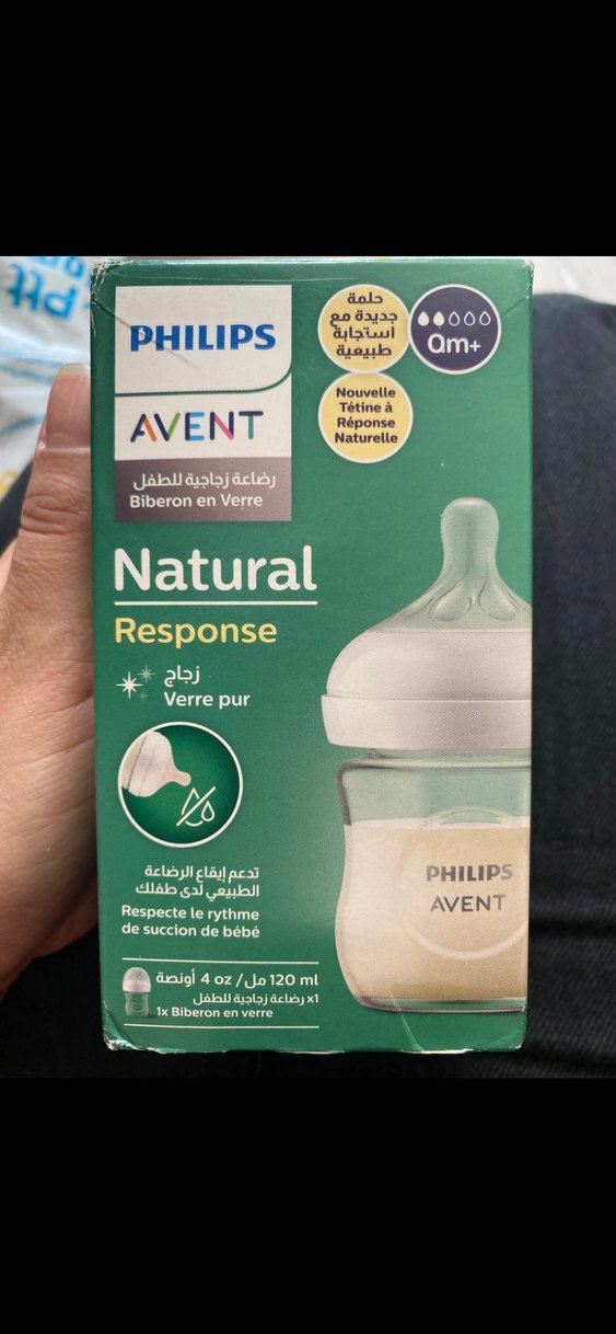Philips Avent Natural Response cam biberon, 120 ml kapasite, bebeğin emme ritmine uyum sağlayan doğal yapılı emzik ve saf cam gövde içerir.