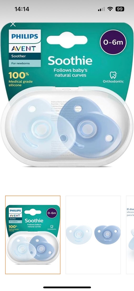 Philips Avent pastel mavi emzik, %100 medikal silikon malzemeden üretilmiştir. Yenidoğanlar için doğal kıvrımlara uyumlu ortodontik tasarıma sahiptir. 0-6 ay. Oğlum doğmadan almıştım fakat emziği tutamadı başka emzik aldık. Yenidir sadece denendi tutmadı.