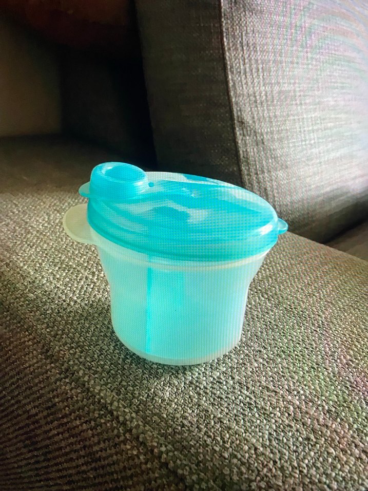 Mavi süt saklama kabı, güvenli kapak ve kompakt tasarıma sahiptir, kolay saklama ve kullanım sağlar.