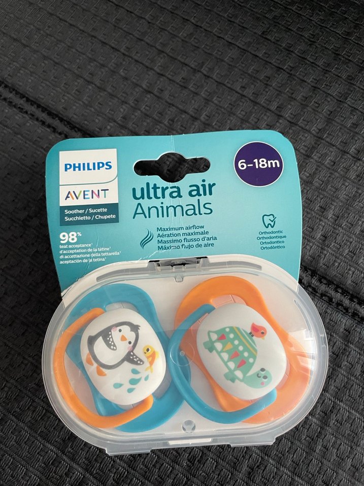 6-18 ay için Philips Avent Ultra Air hayvan desenli emzikler. Maksimum hava akışı ve ortodontik tasarıma sahiptir. Pastel çok renkli.