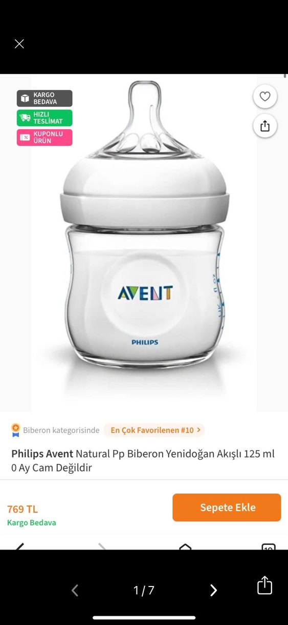 Philips Avent Natural yenidoğanlar için 125 ml kapasiteli akışlı bebek biberonudur. Cam değildir, hafif ve kullanımı kolaydır. Yumuşak doğal emzik tasarımına sahiptir. Philips avent 125 ml yenidoğan plastik biberon az kullandık ama kullanıma bağlı hafif bir sararma var kaynatılıp kullanılması lazım ve oğlum dişlemiş son fotoda görebilirsiniz delik yeri büyümüş o yüzden defoluyu seçerek uyguna yüklüyorum lütfen bakarak alınız