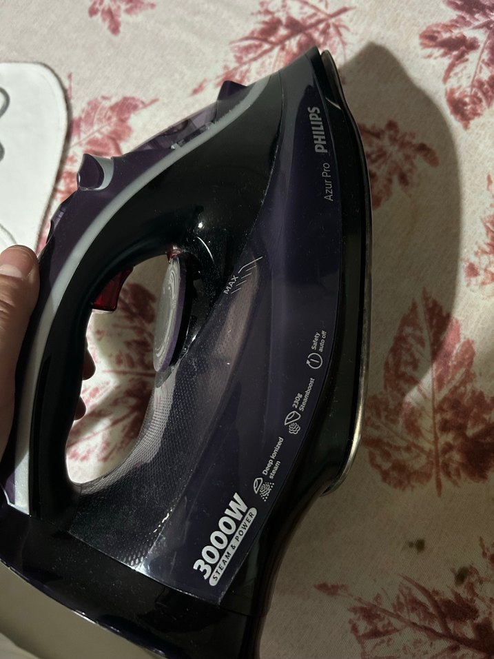 Konforlu tutuşlu ve şık tasarımlı, 3000W güçlü siyah Philips Azur Pro ütü.