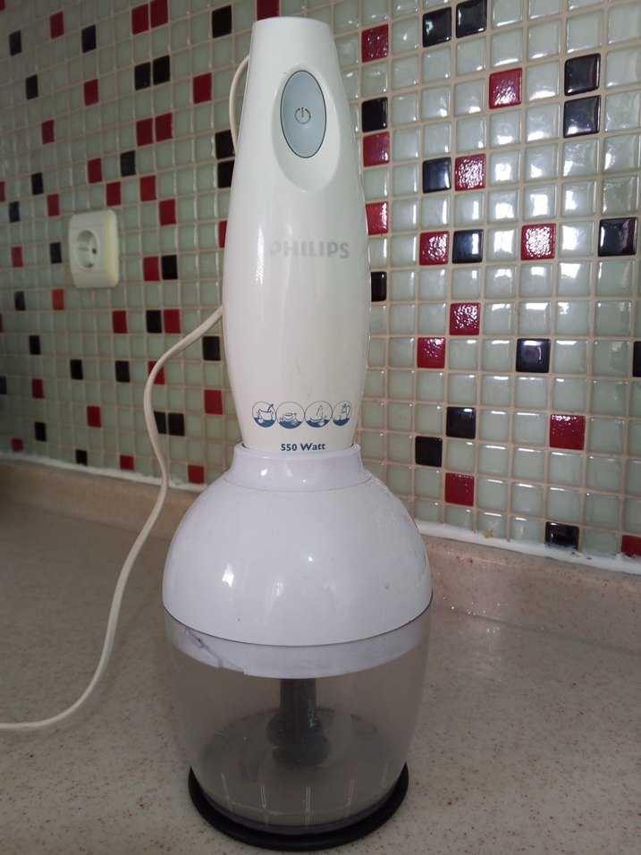 Philips marka, 550 watt gücünde beyaz blender ve doğrayıcı. Tek düğmeli kullanım ve kompakt tasarımıyla pratik kullanım sağlar. ⚪