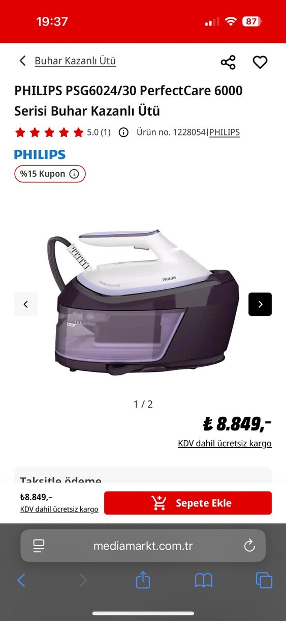 Philips mor buhar kazanlı ütü, geniş su tankı ve güçlü buhar çıkışı ile etkili kırışıklık giderme sağlar. Rahat tutuş ve kolay kullanım özelliklerine sahiptir. Hiç kullanılmadı çeyizime hediye geldi birtane daha ütüm olduğu için satıyorum
