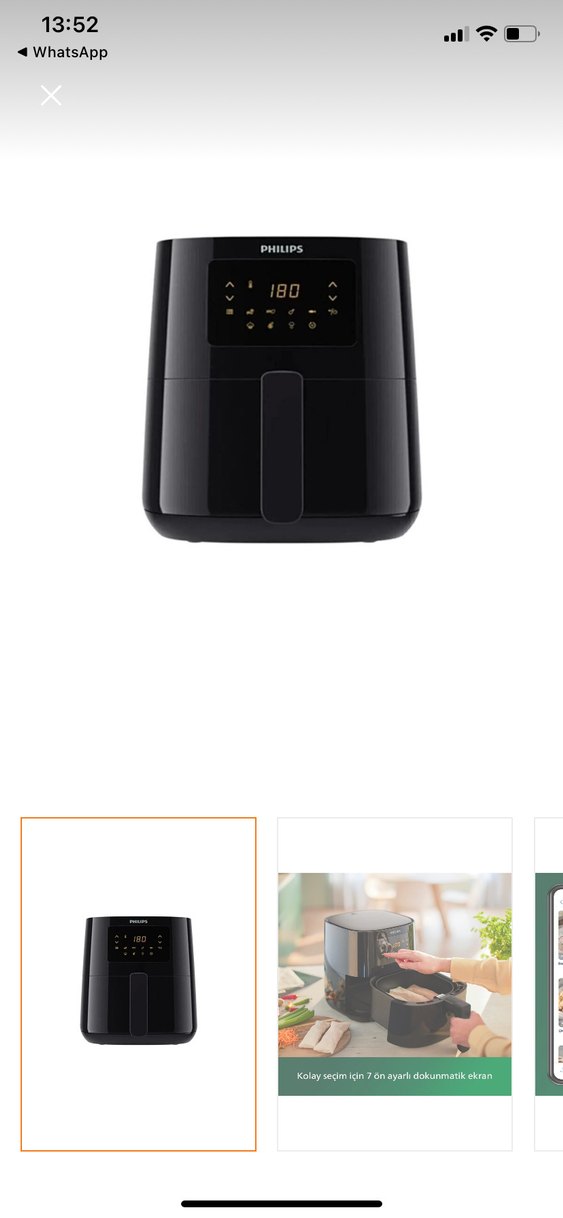 Philips hava fritözü dijital ekran ve 180°C'ye ayarlanabilir sıcaklık sunar, siyah şık tasarıma sahiptir.