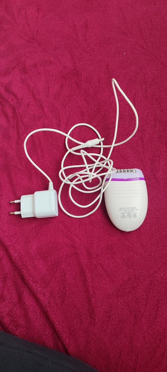 Pastel mor detaylı beyaz epilatör, güç kablosu ve fişi ile birlikte. Hassas tüy alma için uygundur. ✨ uzun zamndir kullanmıyorum cımbız kısmı iyi çalışmıyor degiştirebilseniz daha iyi olur kırıyor tüyleri