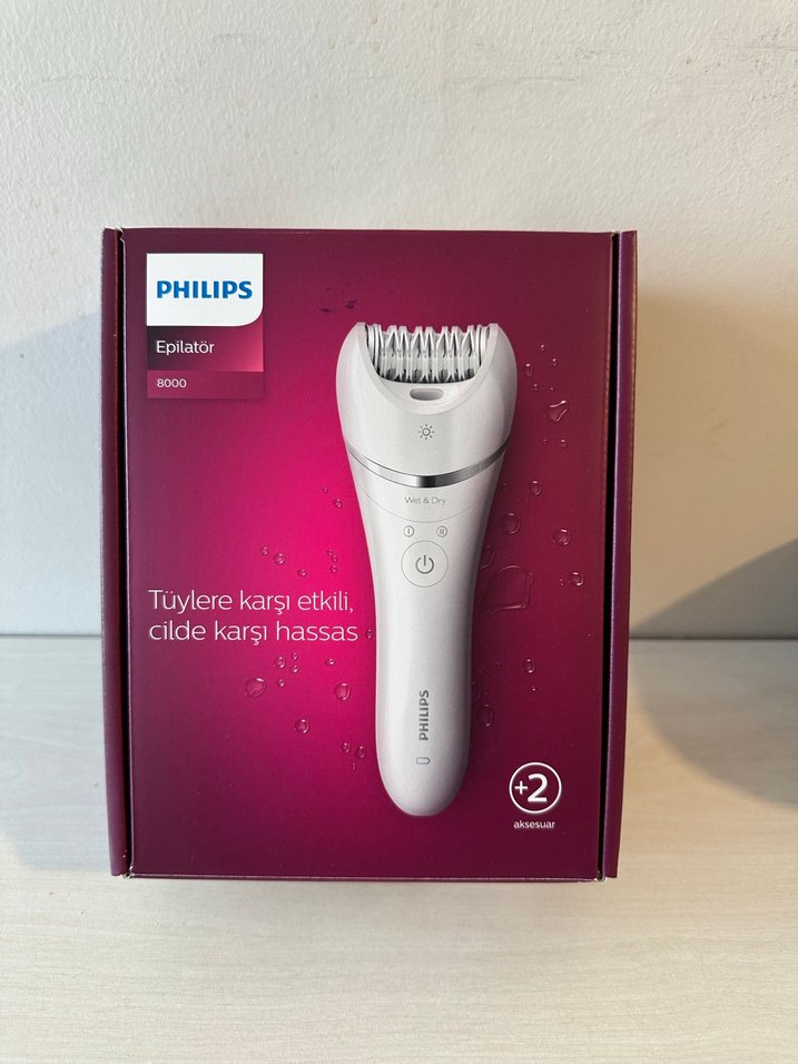 Philips Epilatör 8000, tüyleri etkili şekilde alır ve cilde karşı hassastır. Beyaz renkte olup iki ek aparatı vardır. Hem duşta hem kuruda kullanılabilir. Kablosuz çalışır. Direk Media Markt’tan alındı ama yanlış ürün alındığı için satıyorum hiç kullanılmamıştır. 2 yıl garantisi,5 yıl servis süresi var,belgesi kutunun üzerinde yapışık şekildedir.
