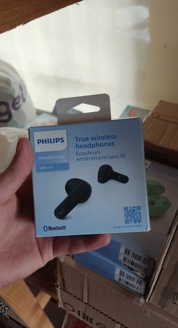 Philips markalı, tamamen kablosuz ve Bluetooth özellikli koyu mavi kulaklıklar. Rahat kullanım için tasarlanmıştır.