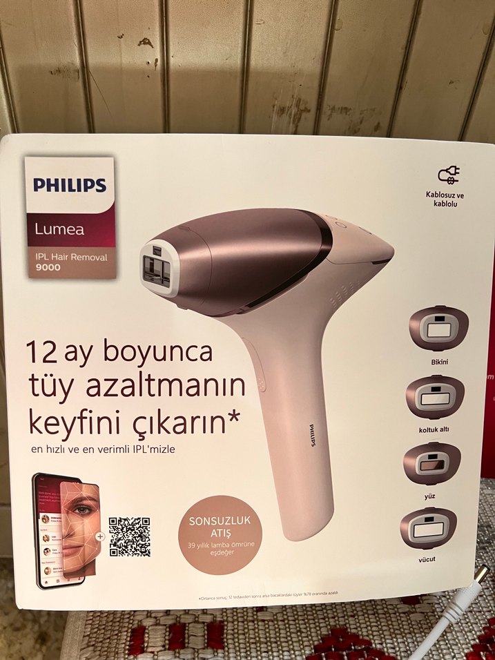 Philips Lumea 9000 IPL epilasyon cihazı, 12 ay boyunca tüy azaltımı sağlar. Bikini, koltuk altı, yüz ve vücut için aparatları vardır. Kablosuz ve kablolu kullanım sunar. ✨