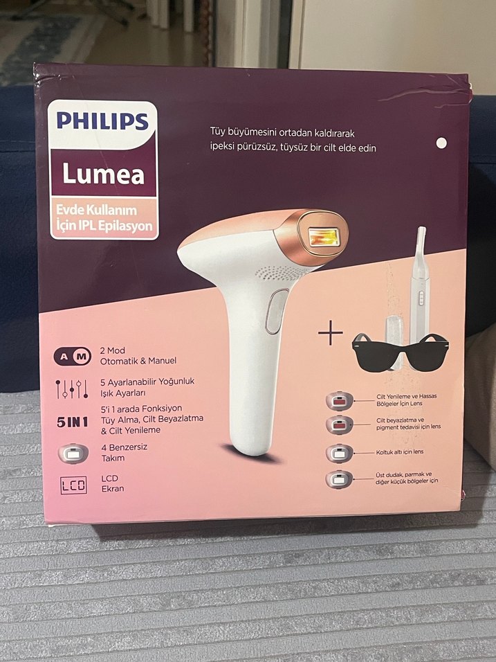 Philips Lumea Lazer Epilasyon Cihazı • 999.999 atım kapasitesi • Sadece 1–2 kez kol bölgesinde deneme amaçlı kullanıldı Cihaz hediye geldi fakat evde başka lazer cihazımız olduğu için ihtiyaç duymuyoruz. Bu yüzden neredeyse yeni durumda. ✔️ Kutusundaki koruyucu gözlük eksiksiz gönderilecek. ✔️ Cihazın 4 adet başlığı tam içerisinde. ✖️ Kaş şekillendirici ustura hijyen açısından kullanıldığı için gönderilmeyecek. ✖️ Taşıma çantasını bulamadığım için çantasız gönderilecek. Cihazın genel durumu tertemiz, sorunsuz ve yalnızca deneme amaçlı 1–2 kez kullanıldı. Uygun fiyattan bırakıyorum, dileyen kontrol videosu isteyebilir.