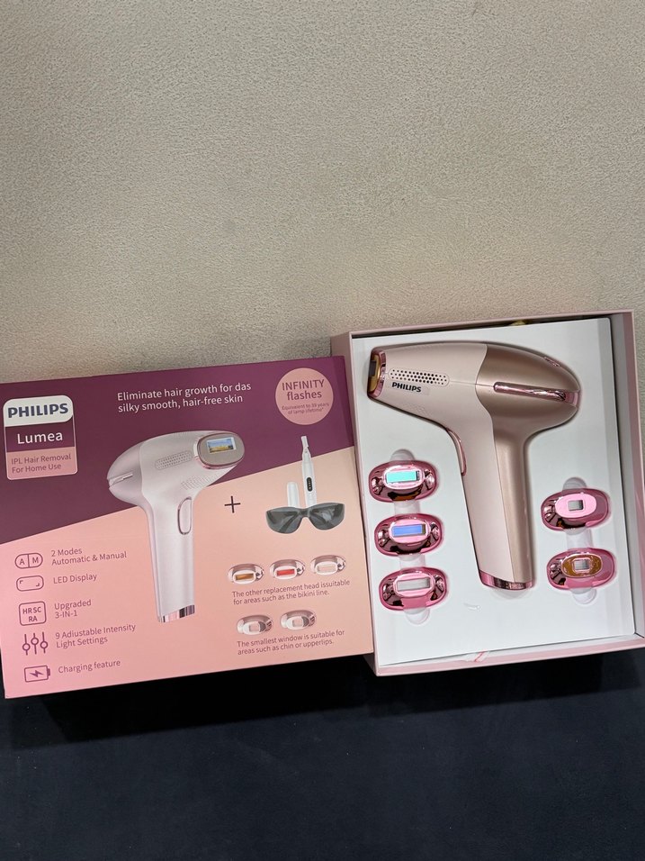 Philips epilasyon cihazı 9 kademeli 5 başlıklı buz atışı Jileti gözlüğü içinde mevcuttur hiç kullanılmamıştır sıfır üründür
