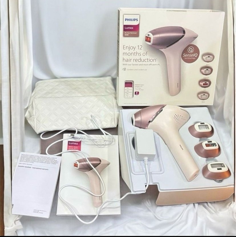 Bej renkli Philips Lumea IPL lazer epilasyon cihazı, SenseIQ teknolojisiyle 12 aya kadar tüy azaltımı sağlar. ✨