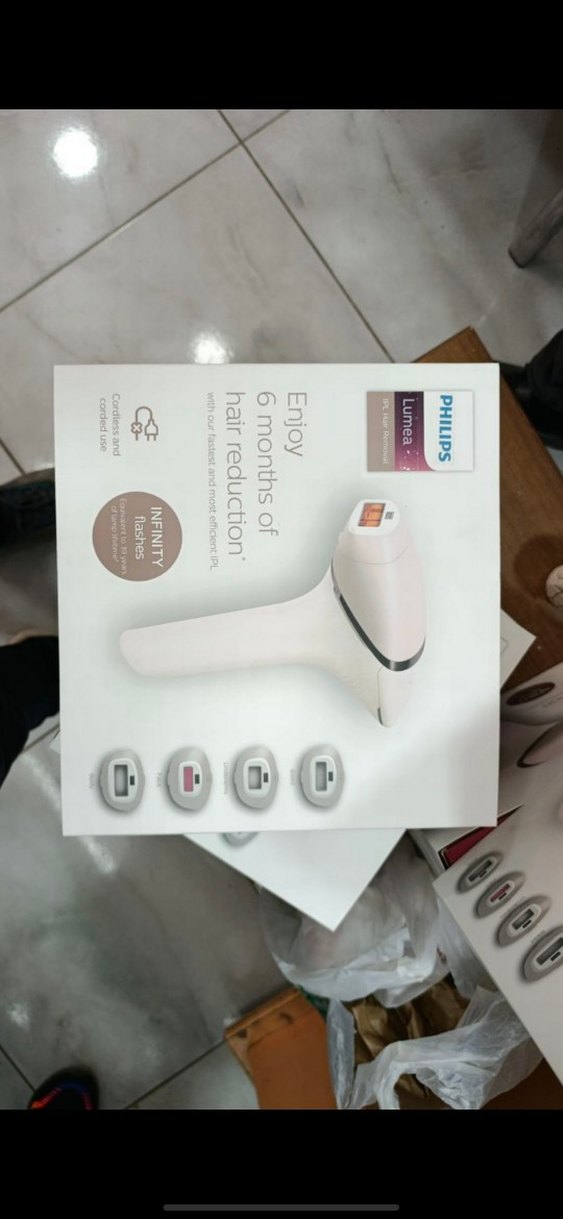 Philips Lumea IPL cihazı, farklı bölgelere uygun başlıklarla 6 aya kadar tüy azaltma sağlar. Beyaz renkte, kullanımı kolay kontrol düğmelerine sahiptir. ✨