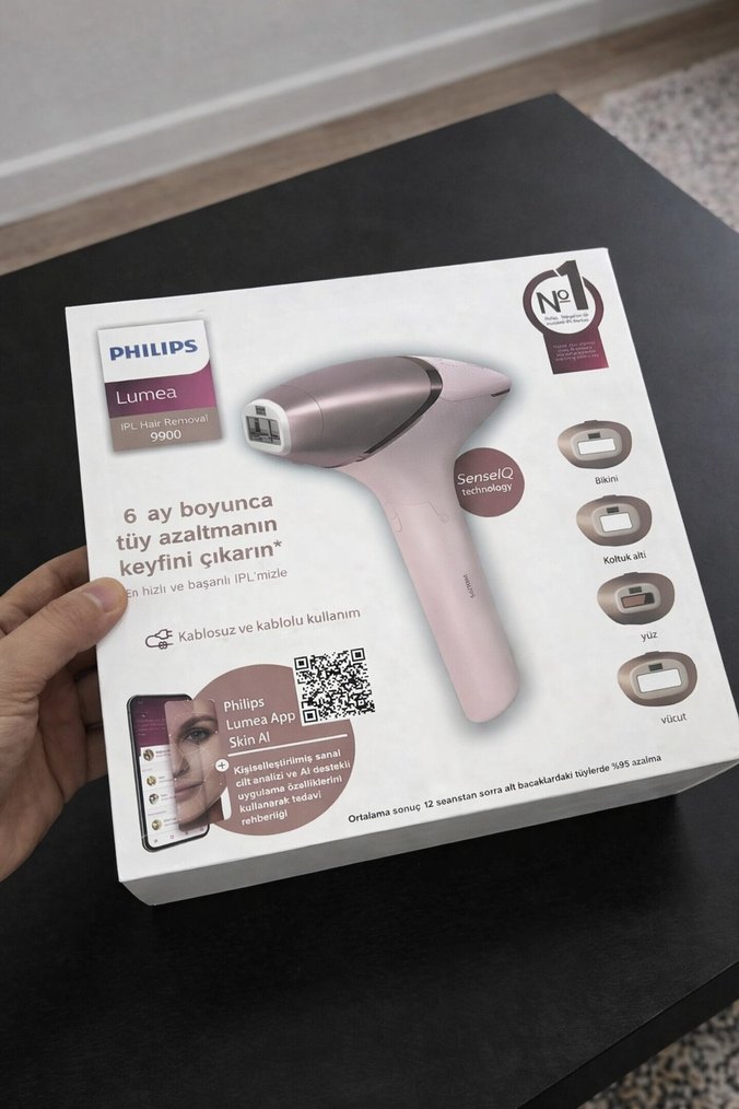 Philips Lumea IPL 9900 lazer epilasyon cihazı, SenseIQ teknolojisi ile 6 aya kadar tüy azaltma sağlar. Kablosuz ve kablolu kullanım imkanı sunar, bikini, koltuk altı ve yüz için aparatlar içerir. Sıfır kapalı kutu sonsuz atış piyasanın en kaliteli ürünü hem kablolu hemde kablosuz çalışma özelliği mevcut
