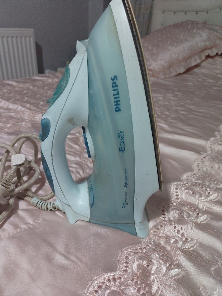Philips markalı, pastel mavi renkte ütü. Düzgün tabanı ile etkili ütü yapar, kompakt ve kullanımı kolaydır.