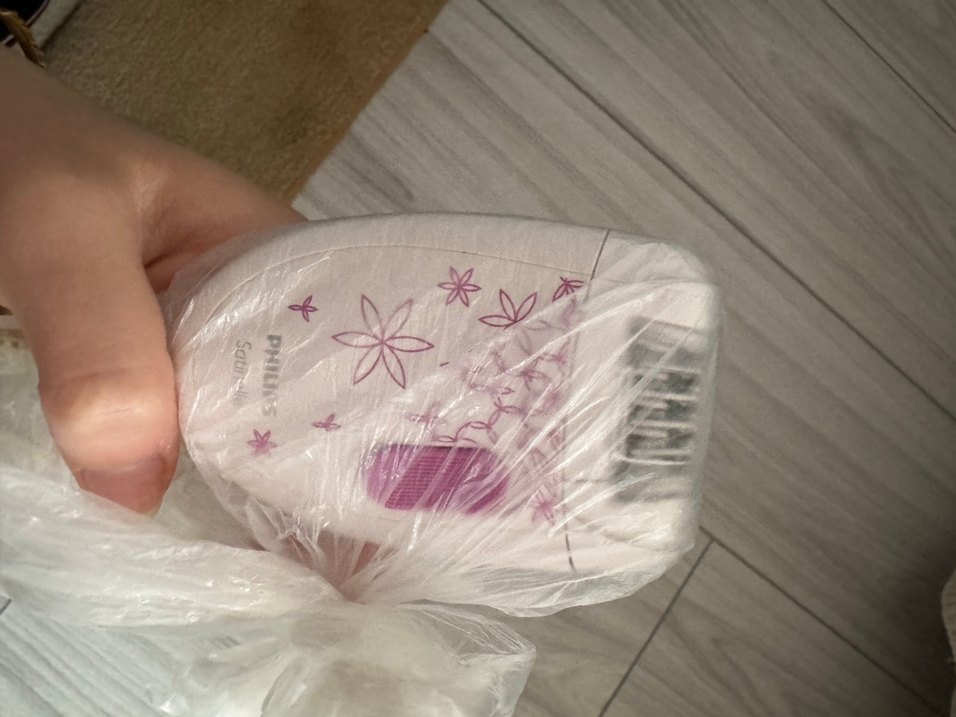 Philips marka, pastel pembe renkte, çiçek desenli ve kullanımı kolay kompakt epilatör.