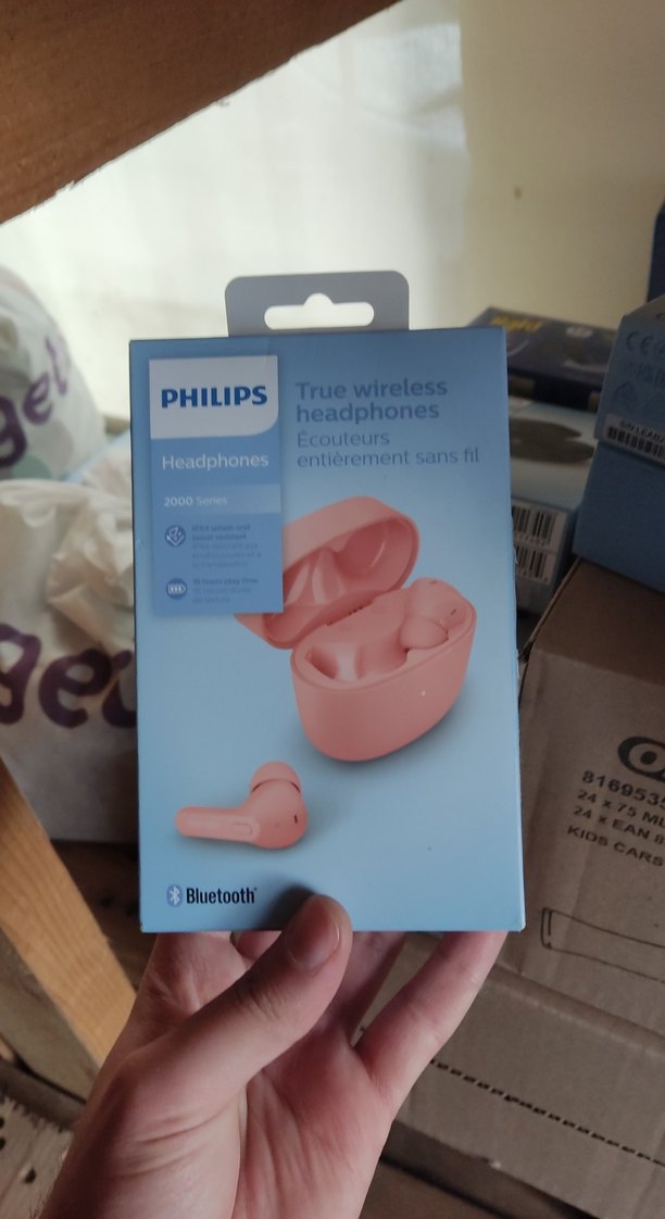 Philips pembe renkli, Bluetooth özellikli tamamen kablosuz kulaklık. Kompakt ve rahat tasarımıyla müzik keyfi sunar.
