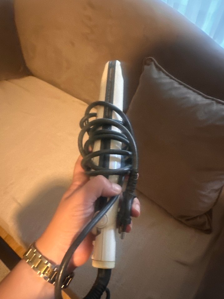 Gri ve beyaz renkte, rahat tutuşlu ve uzun kablolu saç düzleştirici. Saçları pürüzsüz şekillendirmek için uygundur. ✨