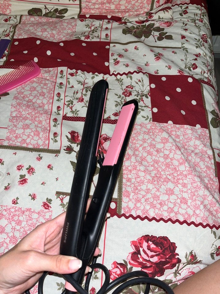 phılıps pembe renkte saç düzleştirici, düzgün plakalarıyla etkili şekillendirme sağlar. Kullanımı kolay ve rahat tutuşa sahiptir. ✨