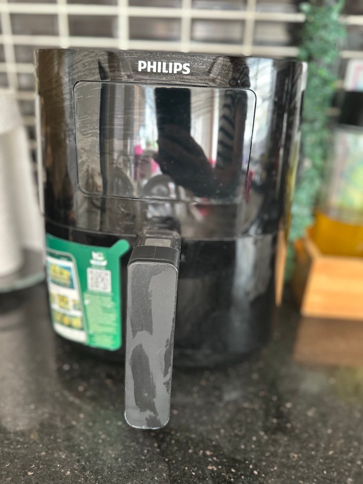 Philips siyah hava fritöz, kolay kullanım için tutamağa sahip kompakt tasarımla az yağda kızartma yapar. Hiçbir sorunu yok garantisi devam ediyor kutulu bir şekilde gönderim yapılacaktır