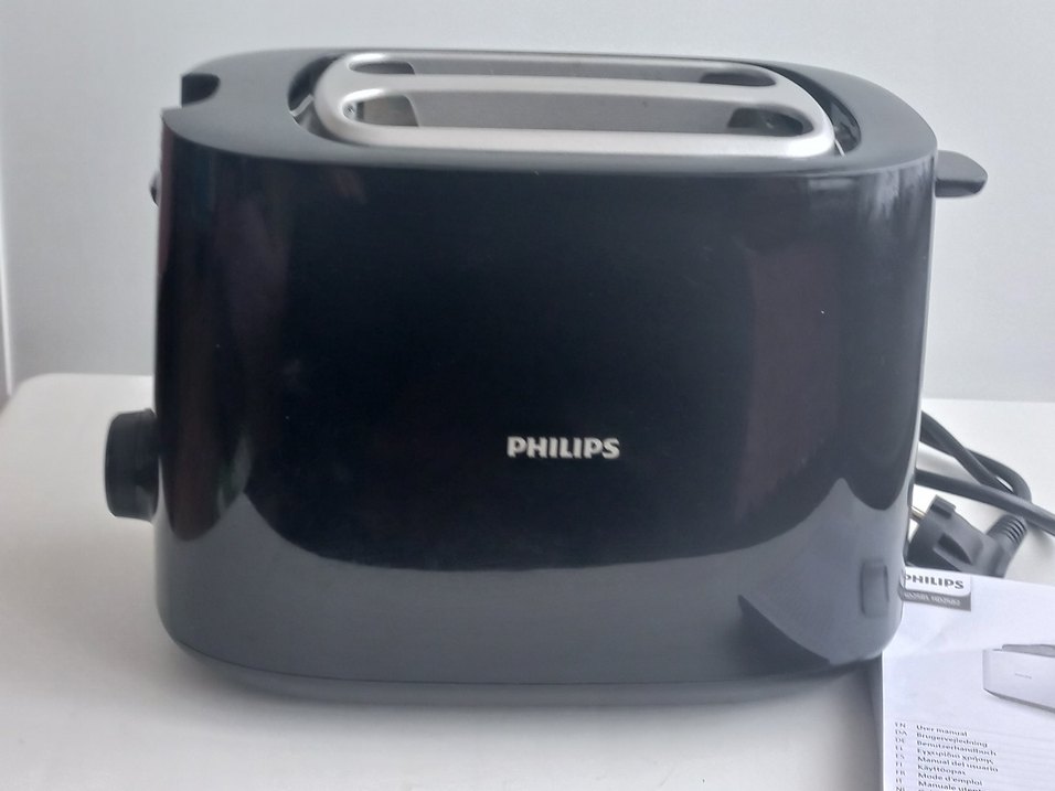Philips marka siyah ekmek kızartma makinesi, çift yuvalı ve şık tasarımlıdır. Ekmekleri eşit şekilde kızartır. Çeyiz ürünüdür. Kullanilmadi