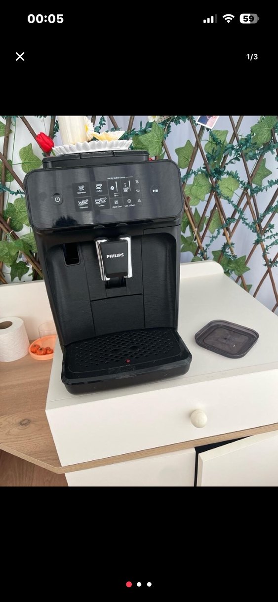 Philips siyah kahve makinesi, kolay kullanımlı kontroller ve çeşitli demleme seçenekleri sunar. Kompakt tasarımıyla her tezgaha uyum sağlar. ☕ Acillll satılık ❗️❗️❗️❗️❗️
