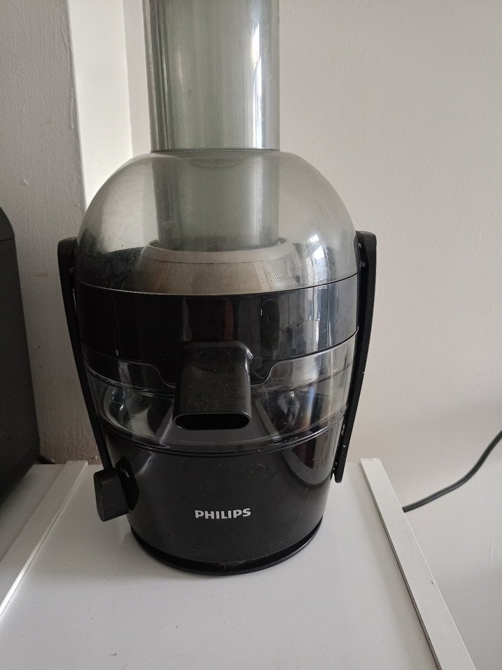 Philips marka siyah renkte, geniş besleme ağızlı ve temizlemesi kolay parçalarla donatılmış katı meyve sıkacağıdır.
