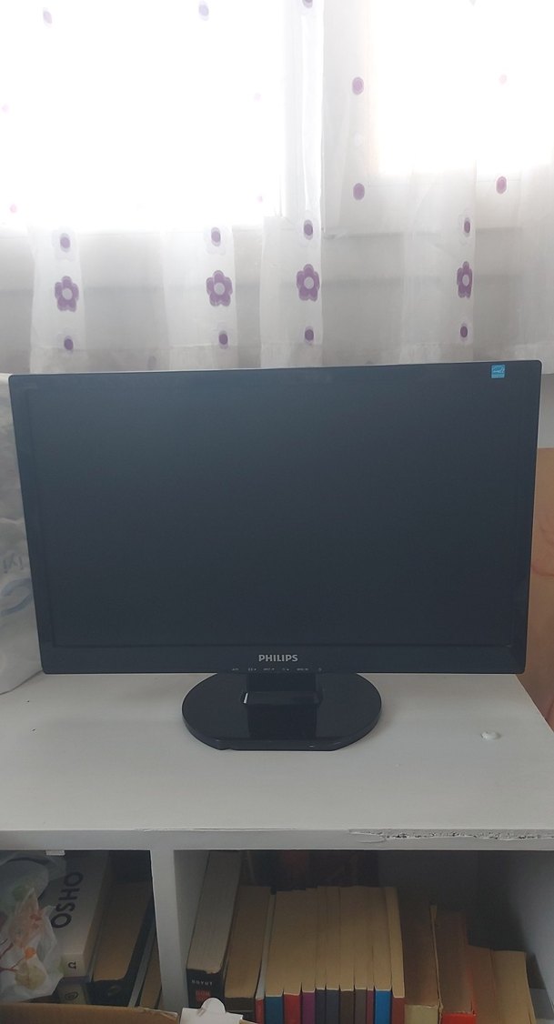Siyah renkli Philips monitör, yuvarlak sağlam tabanlı ve şık tasarımlı ekrandır. ️