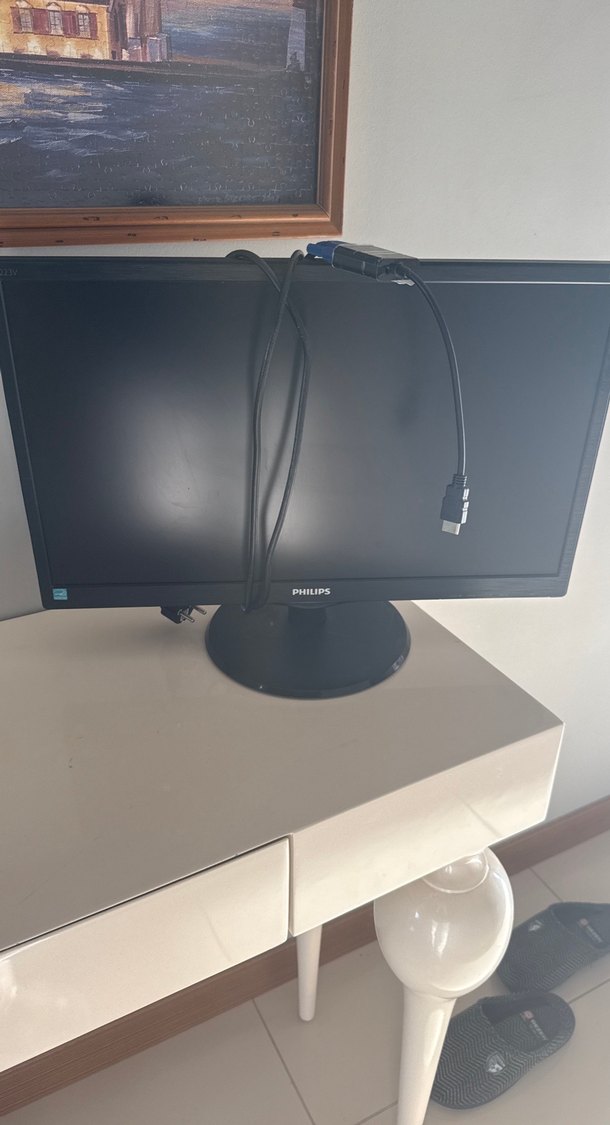 Philips marka siyah monitör, yuvarlak taban ve HDMI bağlantısına sahiptir. Günlük kullanım için uygundur. ️