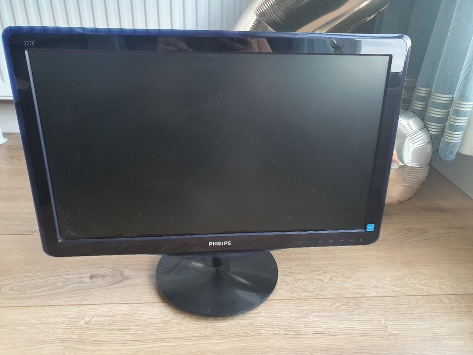 Yuvarlak tabanlı, şık tasarımlı siyah Philips monitör, çeşitli kullanım alanları için uygundur. ️
