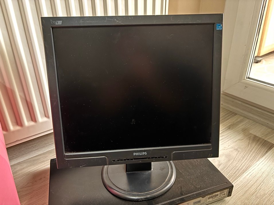 Yuvarlak tabanlı siyah PHILIPS monitör, farklı bilgisayar kurulumlarına uygundur. ️ Model:HNS7170T 170V