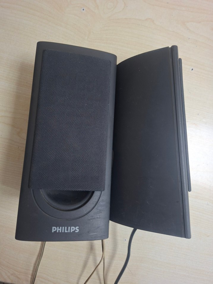Philips markalı siyah hoparlörler, müzik sisteminiz için net ses sunar. Koyu renkli ve şık tasarıma sahiptir.
