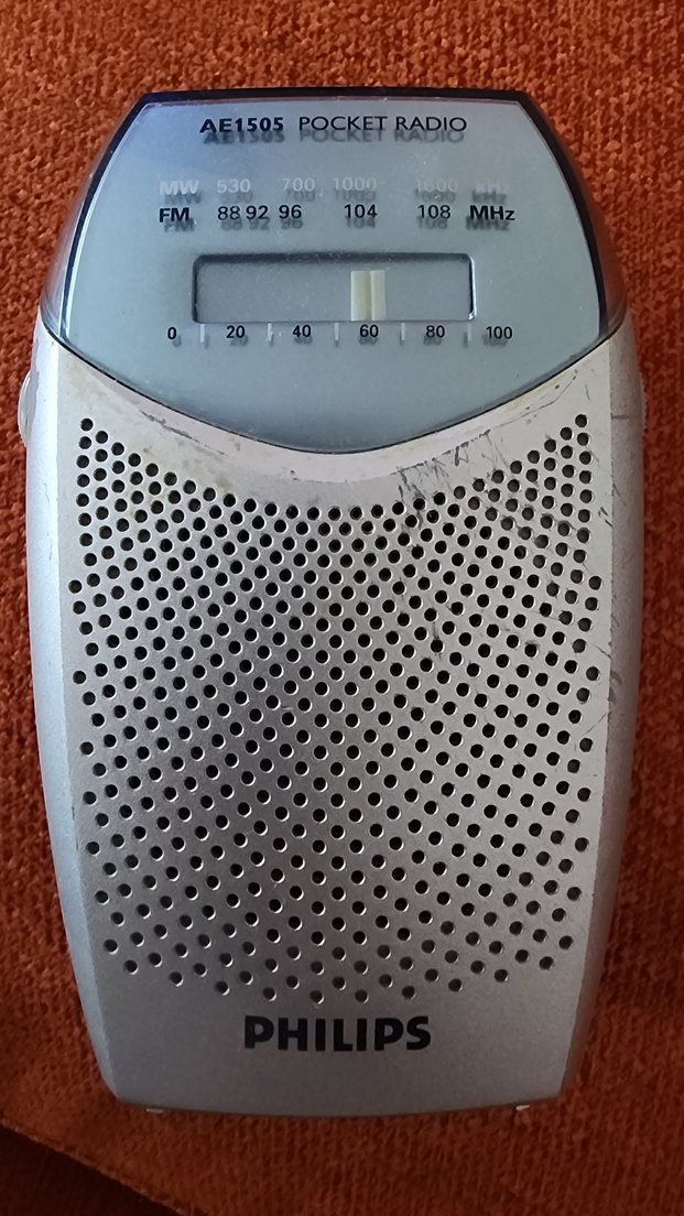 Bej ve gri renklerde, 88-108 MHz FM frekans aralığında ayarlanabilen taşınabilir Philips radyo. Kompakt tasarım ve analog ekranlı. Fonksiyonel olarak bir problemi yokrur. Pille çalışır. Dış yüzeyde bazı çizikler vardır. Fotoğraflarda dış yüzey hataları görülebilir.