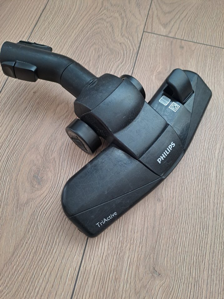 Philips TriActive siyah gri elektrikli süpürge başlığı, çok yönlü emiş ve fırça özellikleriyle zeminleri etkili temizler.