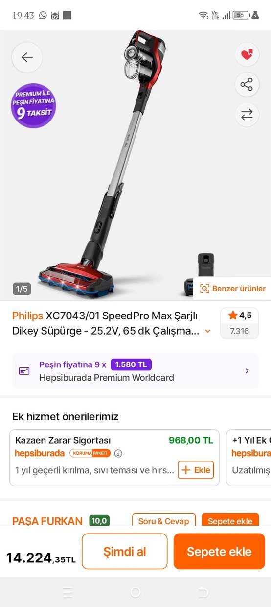 Philips XC7043/01 SpeedPro Max kırmızı şarjlı dikey süpürge, 25.2V güç ve 65 dakika çalışma süresi ile etkili temizlik sağlar. ÇOKK çookk memnunum çekimi temizliği basit bir ürün severek kullandım.Dyson a bir sürü para vermeye hiç gerek yok süper süpürge bana yenisi hediye geldiği için satıyorum. yoksa satmazdım o kadar memnunum ihtiyaç fazlası ben alalı 6 ay felan oldu garantisi devam etmekte kenarlarını dikkatsiz kullandığım için ufak tefek çizikler var