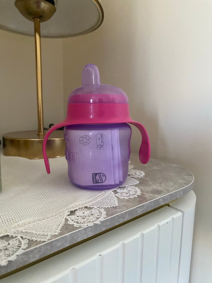 Pastel mor renkte, kolay tutulabilen kulplu ve dökülmeyi önleyen kapaklı bebek biberonu. Hiç kullanmadım hamileyken almıştım sonrasıında kullanmak nasip olmadı. Tertemiz