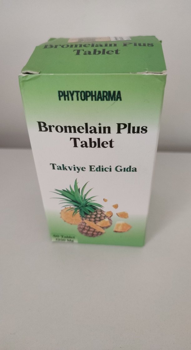 Phytopharma Bromelain Plus, bromelain içeren takviye edici bir tablet olup cilt bakımı ve genel sağlık destekler. İçerisinde 50 tablet kalmıştır.
