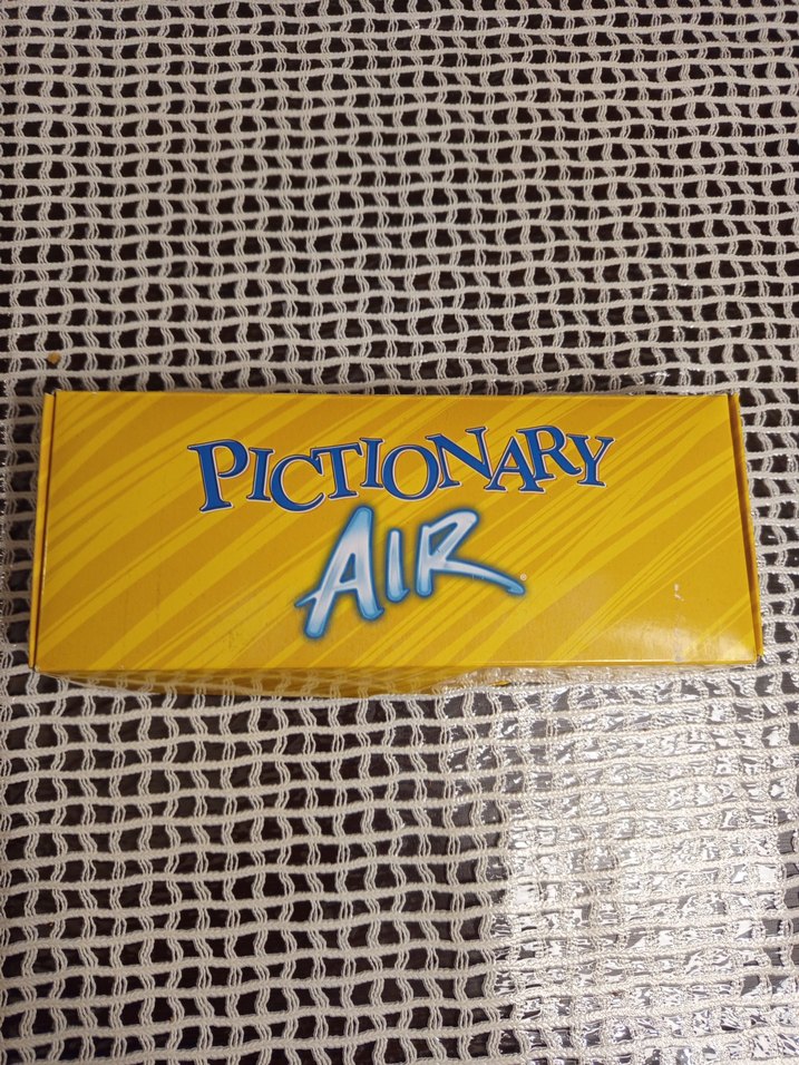 Pictionary Air, oyuncuların havada çizim yapıp diğerlerinin kelimeyi tahmin ettiği bir oyun. Sarı kutuda, üzerinde logo bulunur. Tablet ya da telefona uygulamasını kolayca yükleyerek oynayabilirsiniz. Kartları eksiksizdir. Işıklı kalemi sorunsuz, içinde pili de mevcuttur.