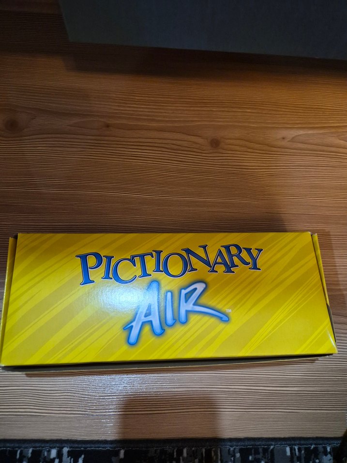 Pictionary Air, oyuncuların havada çizim yapıp kelimeyi tahmin ettiği bir oyun. Parlak sarı kutuda gelir.