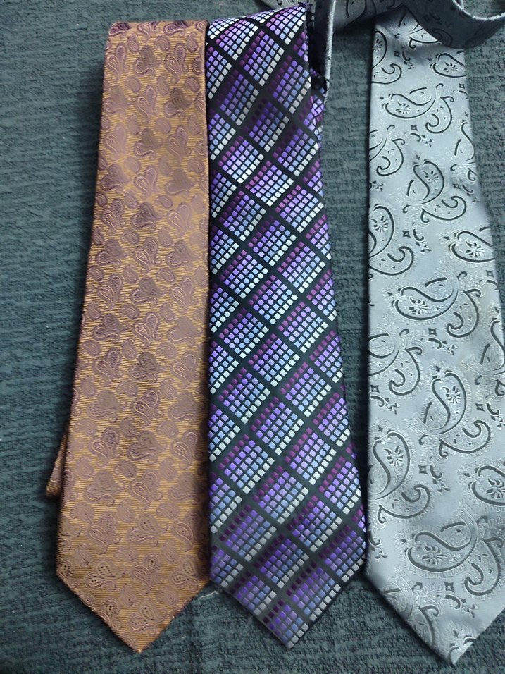Gri ve çok renkli desenlere sahip üç erkek kravatı. Farklı desen ve renklerle iş kıyafetlerine uyum sağlar. adet fiyatıdır almak için sorunuz