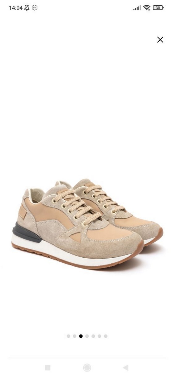 %100 orijinal deri Bej süet malzemeden, bağcıklı ve ince topuklu kadın spor ayakkabısı, günlük kullanıma uygun modern athleisure tarzında.