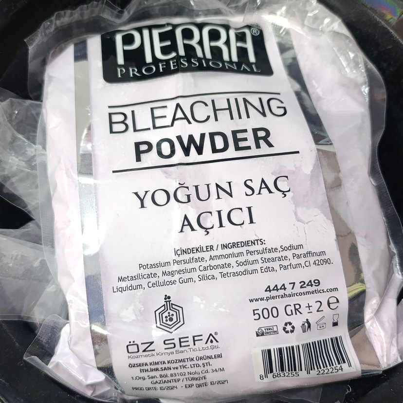Pierra markasına ait parlak beyaz renkte yoğun saç açıcı toz. İçeriğinde Potasyum Persülfat ve Amonyum Persülfat bulunur. 500 gram ağırlığında. ✨