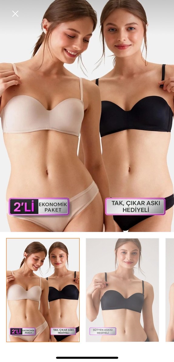 Bej ve siyah renklerde, çıkarılabilir askılı Straplez olarakta kullanılabilir 80B BEDEN.