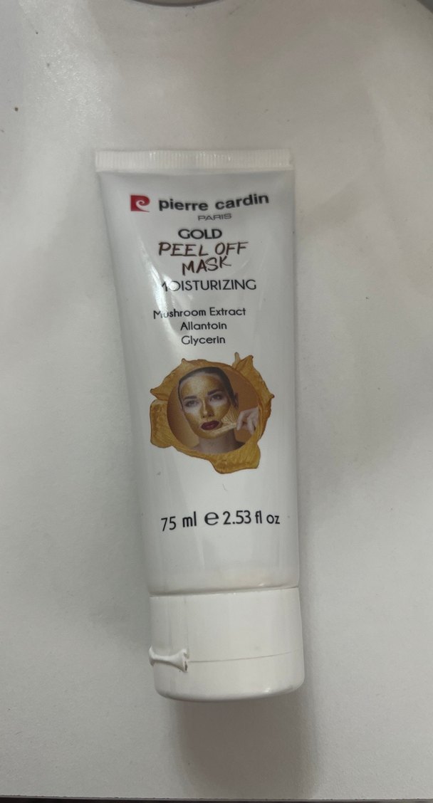 Pierre Cardin Altın Peeling Maskesi, mantar özü, allantoin ve gliserin ile nemlendirici özellik taşır. 75 ml tüp ambalajda sunulur.