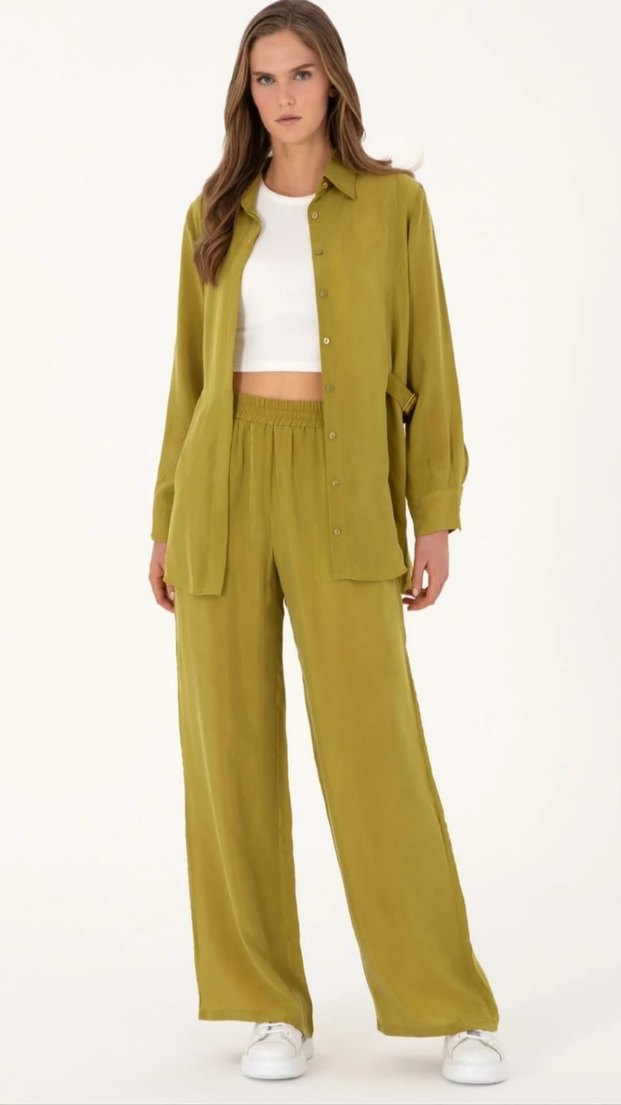 PİERRE CARDİN BAYAN 2'LİTAKIM.40 BEDEN. Pierre cardin yeşil renk 40 beden ikili takım kupro kumaş ipeksi bir dokusu var çok şık ve kullanımı rahat tesetturede uygundur az kullanılmış sorunsuzdur