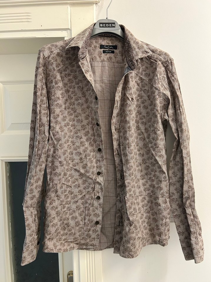 Pierre Cardin bej renkli, desenli erkek gömlek, uzun kollu ve düğmeli. Normal kesim ve yakası notched lapel. Ofis ve günlük kullanım için uygun.