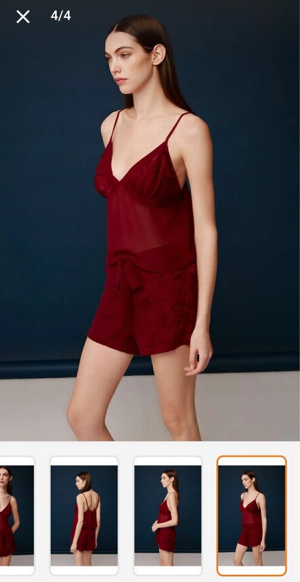 Bordo renkli, askılı ve mini boy kadın şort pijama takımı. İnce askılar ve salaş kesimle sade ve modern bir tasarım sunar.